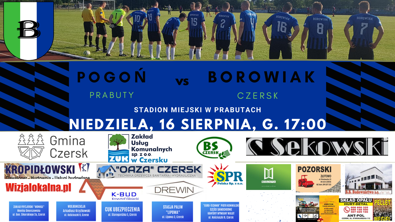 Wygrana nad Pogonią Prabuty byłaby idealnym początkiem rundy w wykonaniu podopiecznych trenera Artura Papierowskiego. Jednak zdajemy sobie sprawę, że o taki rezultat nie będzie łatwo, bo zawodnicy z Prabut bardzo potrzebują punktów. Wprawdzie w tabeli po dwóch kolejkach ligowych faworytem spotkania jest Borowiak, który zajmuje czwartą pozycję z 6 punktami, a Pogoń Prabuty jest bez punktów na zaledwie dwunastej pozycji z dorobkiem 1 strzelonej i 7 straconych bramek. Pamiętajmy jednak, że w pierwszym spotkaniu Pogoń podejmowała na swoim obiekcie pretendentów do awansu – Żuławy Nowy Dwór Gdański, z którymi przegrali 0:5. W 2. kolejce miała równie ciężki wyjazd do Starogardu Gdańskiego, gdzie uległa już zaledwie 2:1. To wskazuje, że ekipa Pogoni może jeszcze „namieszać” w rozgrywkach. Czerszczanie mogą za to poszczycić się bardzo wyrównanym składem, gdzie każdy z zawodników potrafi pociągnąć grę zespołu i przechylić szalę zwycięstwa na naszą korzyść. Szykuje się więc trudny mecz, jednak łatwo skóry nie oddamy! Borowiak mimo wszystko jedzie do Prabut po zwycięstwo i chce zaprezentować dobry futbol. O tym, że potrafimy wygrywać, mimo utraty gola jako piersi, przekonaliśmy się w dwóch poprzednich kolejkach. Mamy nadzieję, że teraz zawodnicy wyciągnęli wnioski i pewnie zainkasują kolejne trzy punkty!