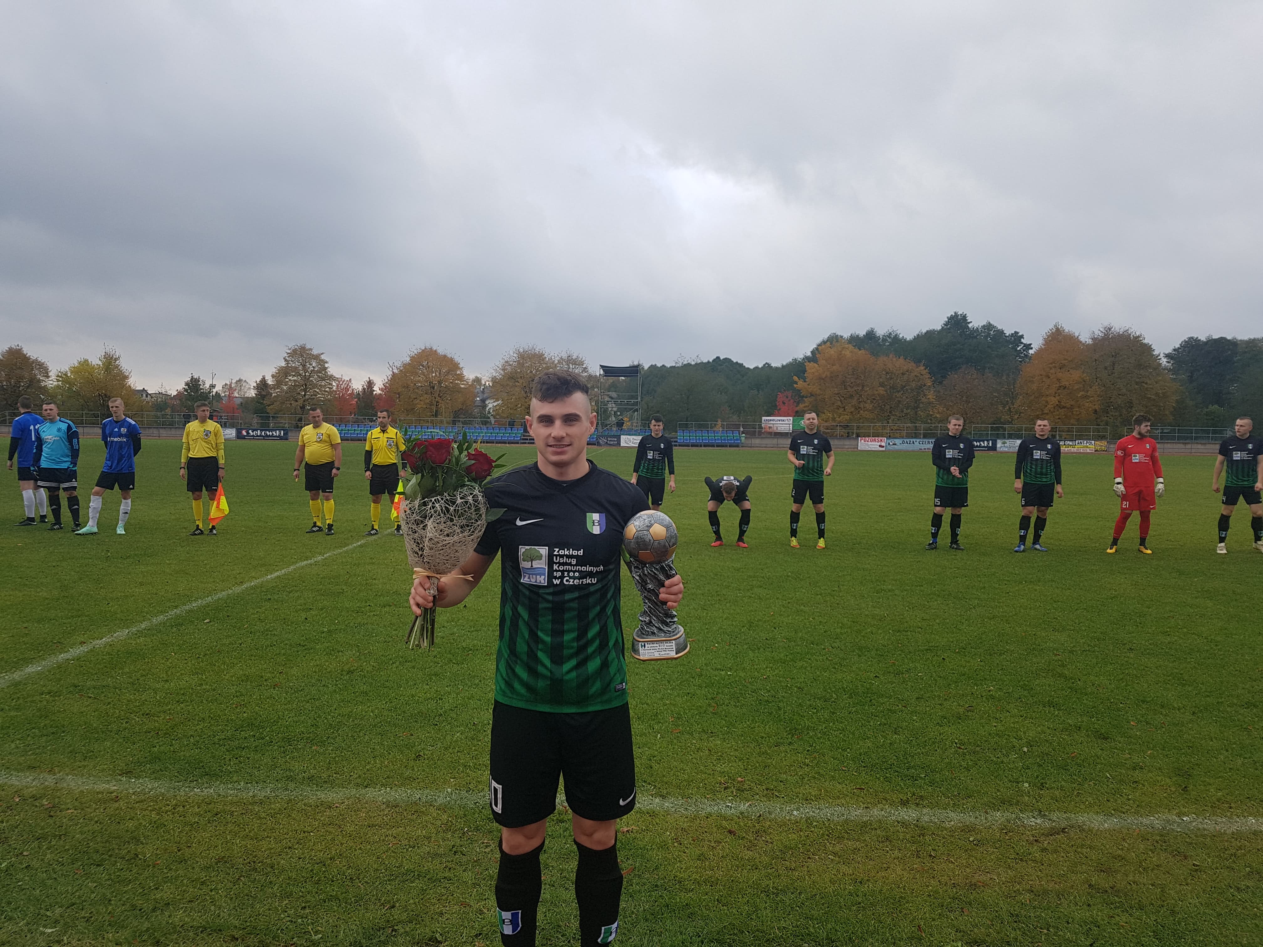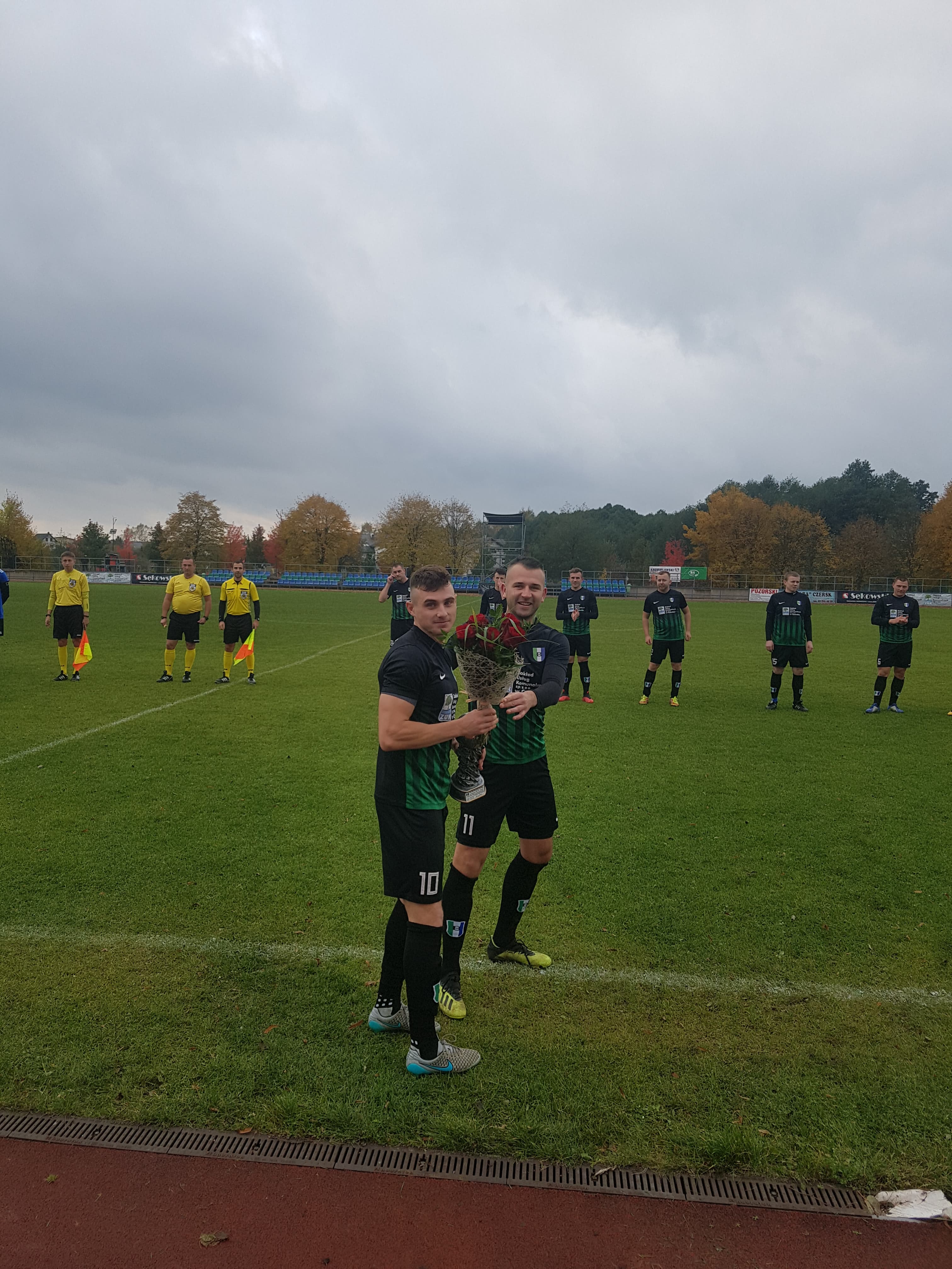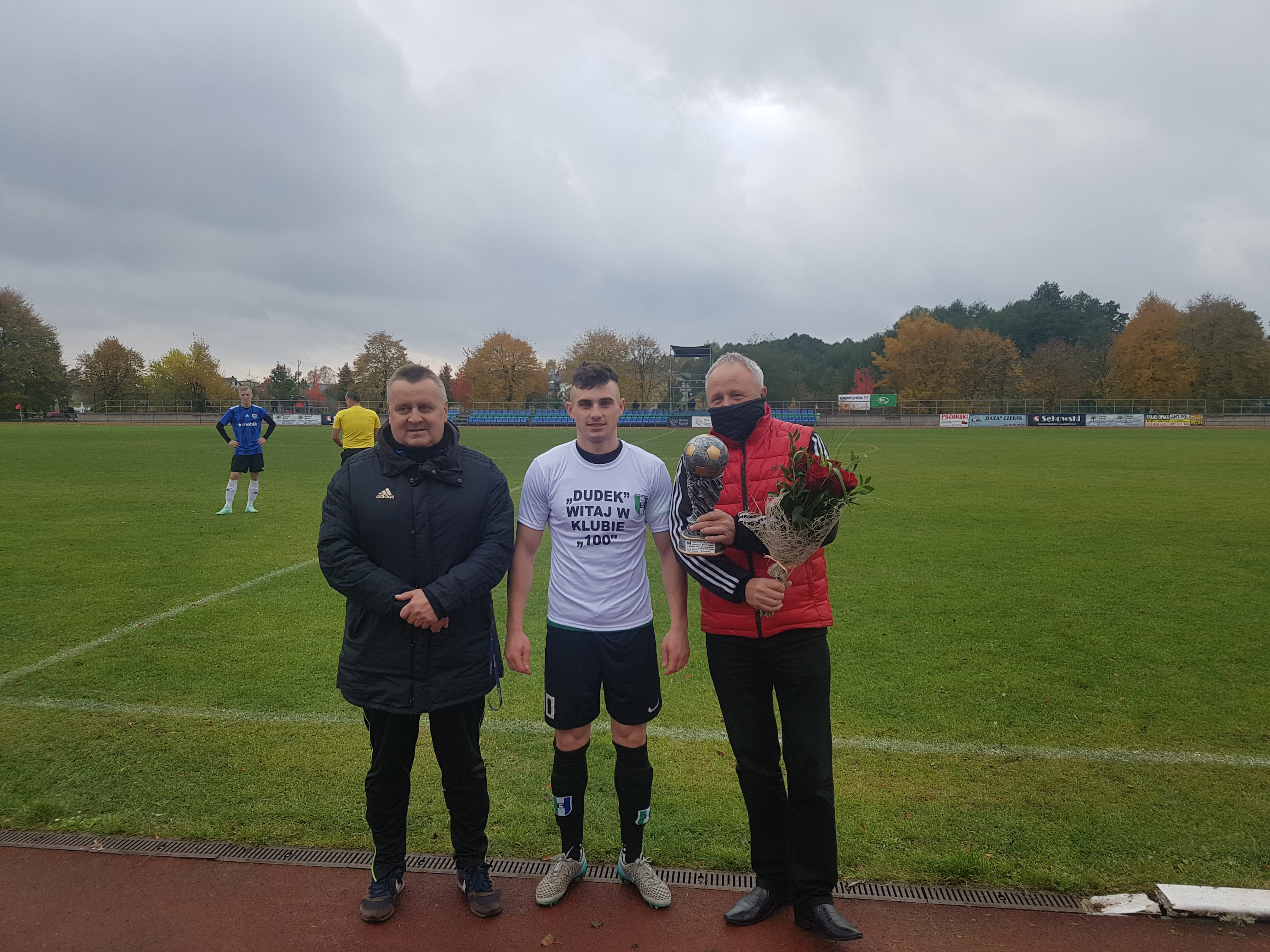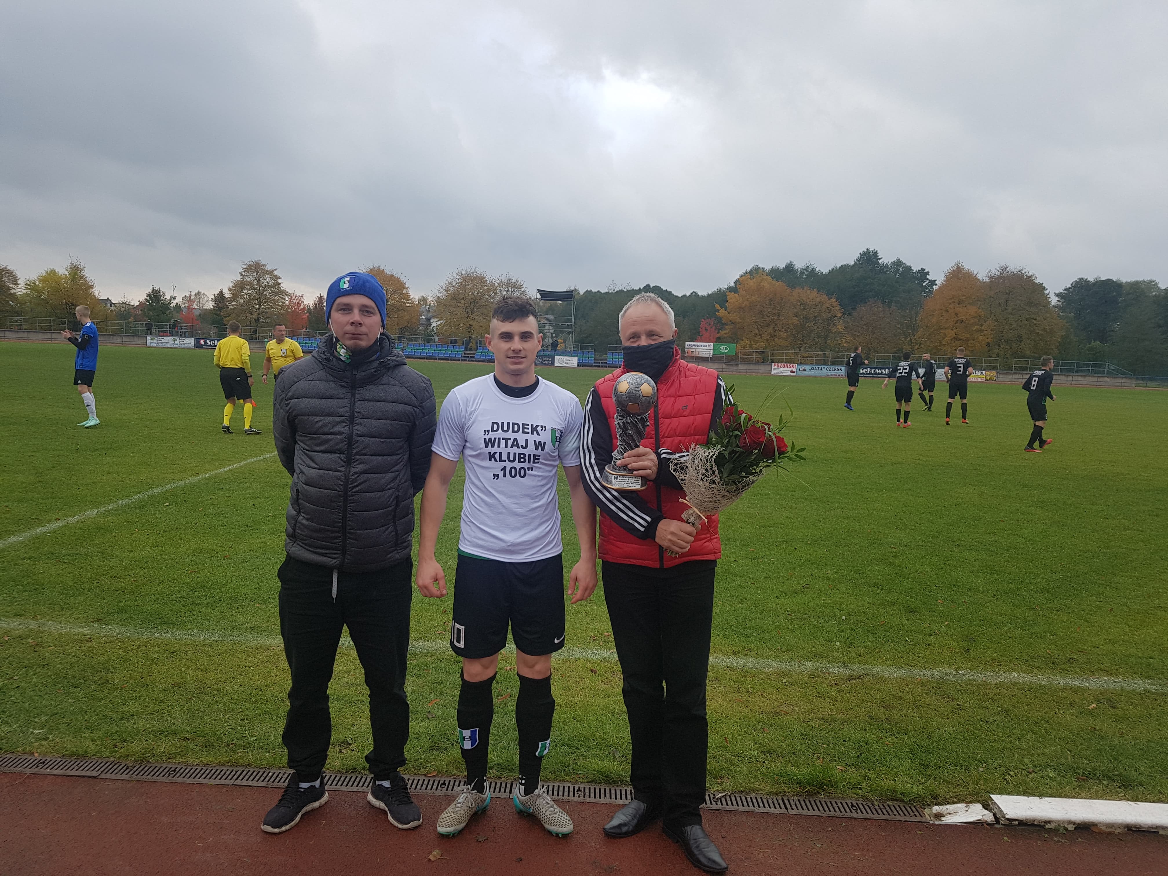 Dziękujemy kibicom za liczne uczestnictwo w transmisji live na portalu Facebook. Jesteśmy dumni, że mamy tak liczną rzeszę fanów. Przed spotkaniem Patryk Duda z rąk działaczy klubu otrzymał pamiątkowy puchar oraz kwiaty za zdobycie 100 bramek w barwach Borowiaka, od przedstawiciela Fanclubu koszulkę upamiętniającą te chwile. Patryk, raz jeszcze gratulujemy i życzymy kolejnych 100 trafień w koszulce Borowiaka Czersk!