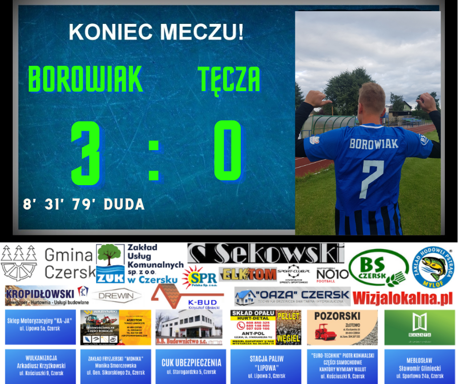 Borowiak zwycięża w derbach i umacnia się na pozycji lidera! Hattrick Dudy daje zwycięstwo! 14. wygrana z rzędu na Stadionie Miejskim w Czersku!