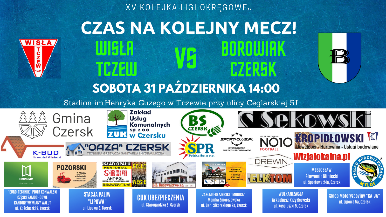 Początek spotkania między Wisłą Tczew, a Borowiakiem Czersk zaplanowano na sobotę na godzinę 14.00. Niestety ze względu na obostrzenia mecz odbędzie się bez udziału publiczności.