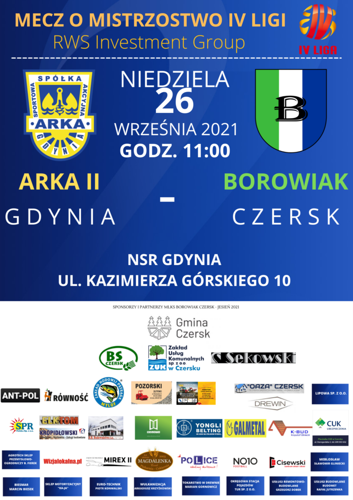 Kolejny trudny wyjazd Borowiaka Czersk do Trójmiasta. Czerszczanie zagrają z rezerwami Arki Gdynia. Czy piłkarze z Czerska przełamią wyjazdową passę?