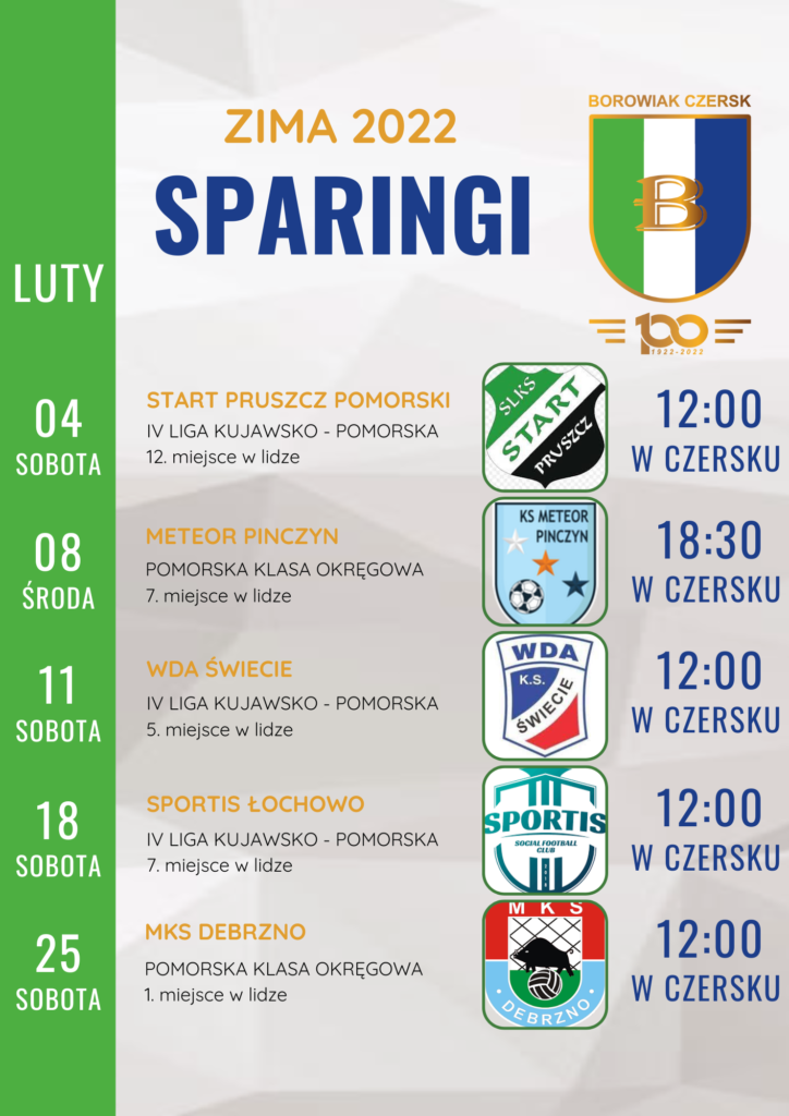 Zakończył się mundial, więc czas powrócić do zmagań lokalnej piłki nożnej. Piłkarze Borowiaka rozpoczną ciężką pracę przed startem rundy wiosennej 16 stycznia 2023 roku. W ramach przygotowań trener Artur Papierowski zaplanował pięć spotkań kontrolnych. Niestety z powodu szybkiego startu rundy rewanżowej ostatni, szósty sparing z Tarpanem Mrocza został anulowany. Znamy terminarz meczów sparingowych Borowiaka Czersk […]