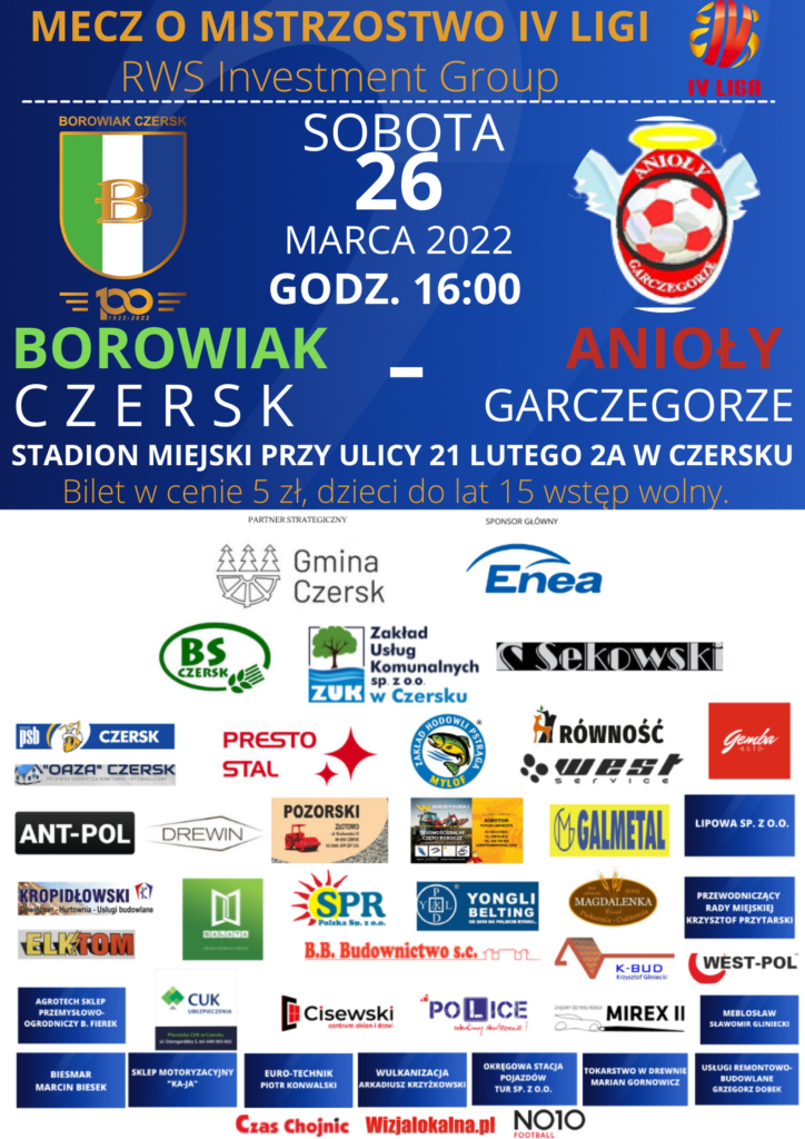 Piłkarze Borowiaka Czersk rozegrają pierwszy mecz na własnym boisku pod wodzą nowego trenera. W sobotę podopieczni Tomasza Fojuta rozegrają swój pierwszy mecz w rozgrywkach wiosennych na własnym Stadionie przy ulicy 21 Lutego 2a. Po zeszłotygodniowej porażce w Gdańsku z Lechią II, zrobią wszystko, żeby przed własną publicznością zwyciężyć.
