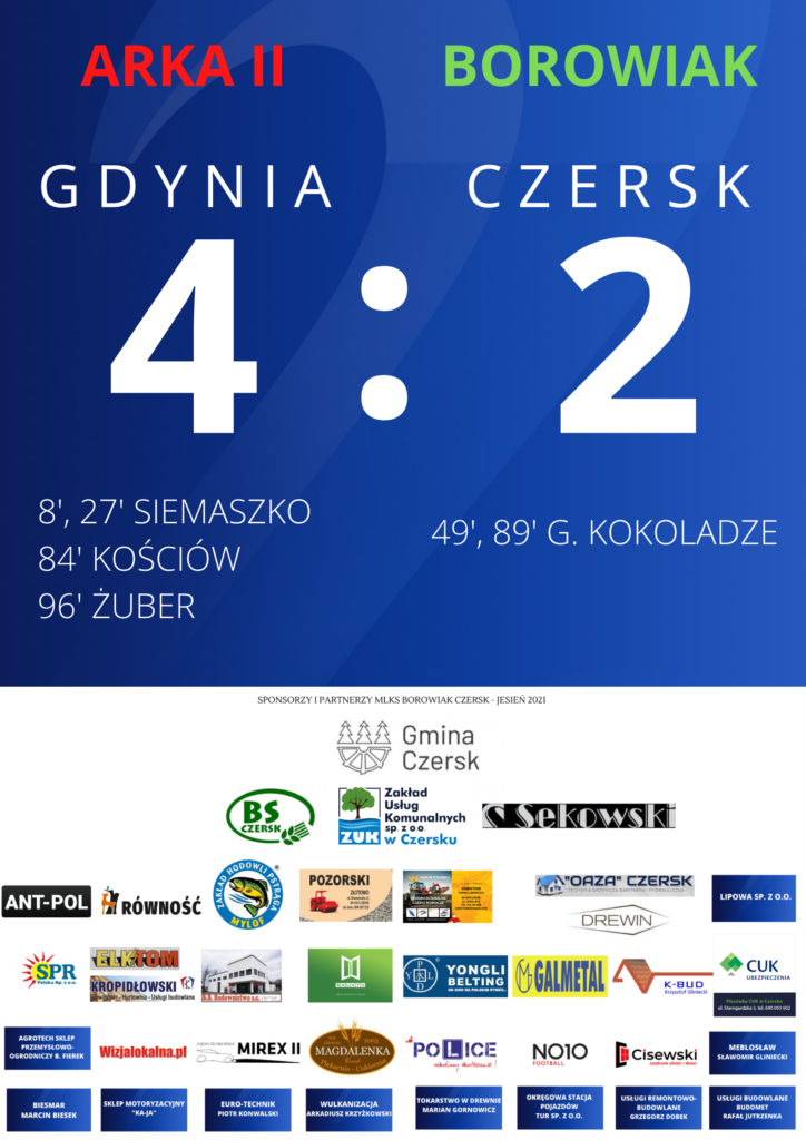 Porażka z rezerwami Arki Gdynia. W niedzielę w Gdyni na sztucznej murawie Borowiak rozgrywał swój kolejny mecz w ramach rozgrywek IV ligi. Przeciwnikiem podopiecznych trenera Artura Papierowskiego były rezerwy Arki.