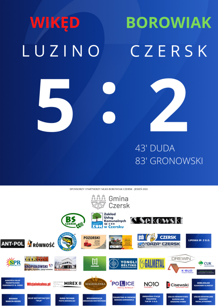 Wypunktowani przez Wikęd. Kolejna wyjazdowa porażka Borowiaka. Fatalna passa Borowiaka na wyjazdach trwa w najlepsze. Tym razem czerszczanie przegrali po słabej grze w Luzinie z Wikędem 5:2, choć w meczu nie brakowało kontrowersji. Bramki dla Borowiaka zdobył Patryk Duda oraz Jakub Gronowski.