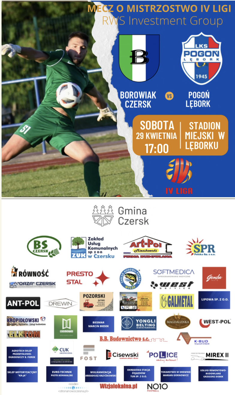 W sobotę punktualnie o godzinie 17:00 drużyna Borowiaka powalczy o kolejne punkty z zespołem Pogoń Lębork.