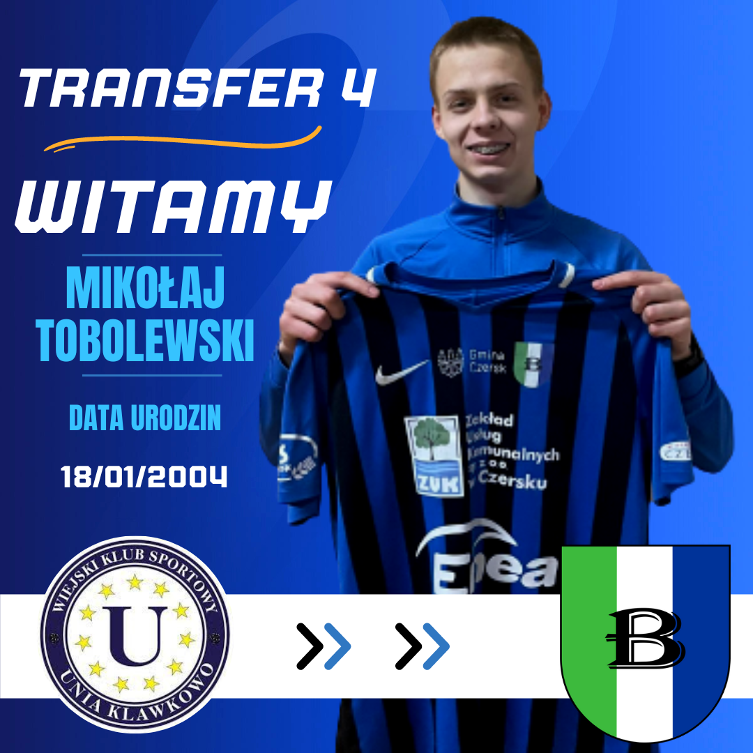 Mikołaj Tobolewski 19-letni zawodnik urodzony w Chojnicach. Wychowanek Szarży Krojanty, który następnie występował w Unii Klawkowo, gdzie zaliczył debiut w piłce seniorskiej, i z którą w sezonie 2020/2021 awansował do A-klasy. Występujący na pozycji napastnika. Oprócz grania w piłkę rozwija się studiując na Akademii Wychowania Fizycznego w Gdańsku. Jest to czwarty transfer definitywny do Borowiaka Czersk.