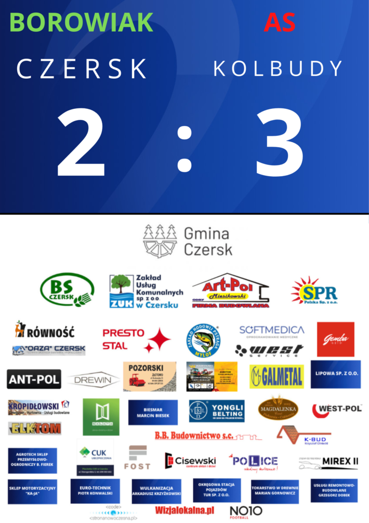 Po długich zmaganiach na Stadionie Miejskim w Czersku, drużyna Borowiaka przegrała z AS Kolbudy 3:2.