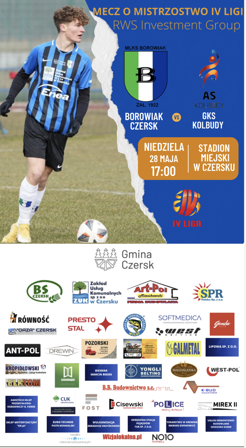 W tą niedziele na Naszym Stadionie Miejskim w Czersku będziemy gościć drużynę GKS Kolbudy.